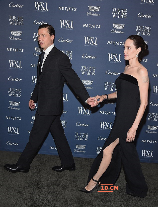 Далее рассмотрим еще пару фото, где сравним рост Анджелины Джоли с ростом Блэк Джека (169 см). Оба фото сделаны в разное время, но тем не менее за вычетом высоты каблука актрисы, ее рост в обоих случаях остановился на отметке 164-165 сантиметров.