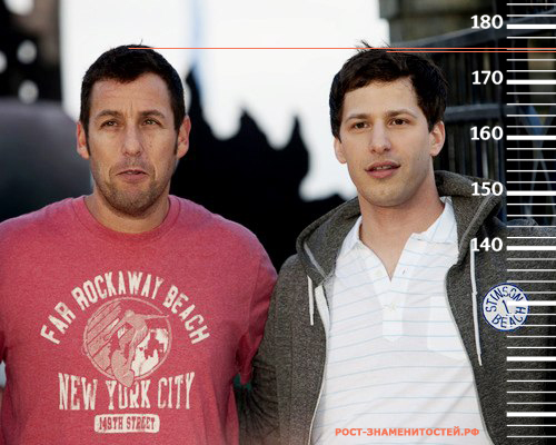 И напоследок сравним рост актера с ростом Бена Стиллера (170 см). В обоих случаях разница между актерами одинаковая — примерно 6 сантиметров, а значит и рост Адама будет на той же отметке, что и ранее.