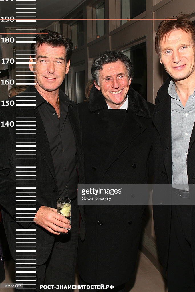 На следующих трех фото, сделанных в разное время, сравним актера с Сэмюэлем Лерой Джексоном (1 фото) и Пирсом Броснаном (2 и 3 фото), которые имеют рост по 184 сантиметра каждый. Во всех трех случаях Лиам Нисон практически не сутулится, и его рост сосредоточился на отметке 190-191.