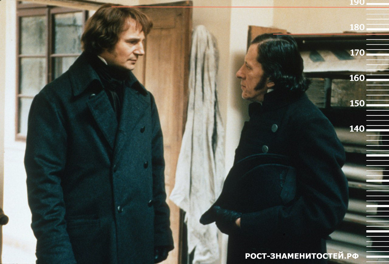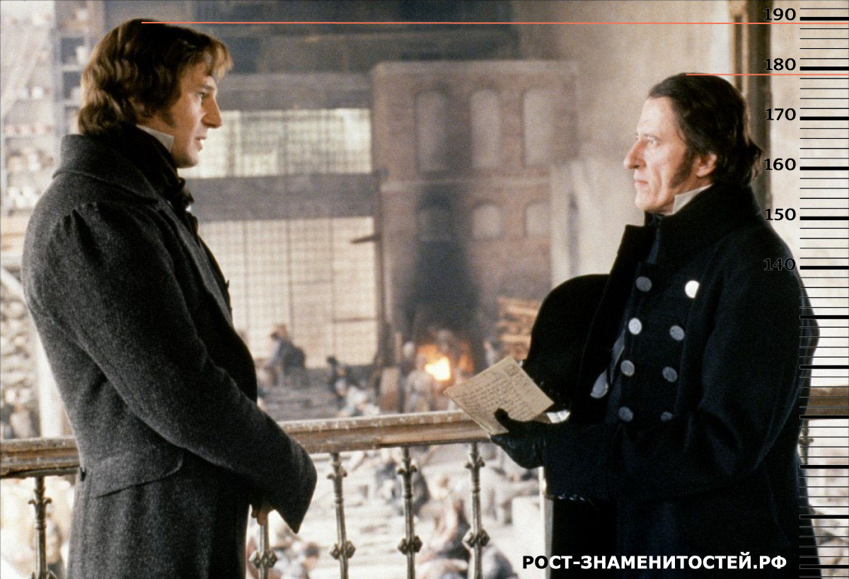 Рост Джеффри Раша достигает отметки 178 сантиметров. На обоих кадрах видно, что Лиам Нисон снова сутулится и слегка наклоняет голову вниз, от чего его рост снова оказался на отметке не выше 189.