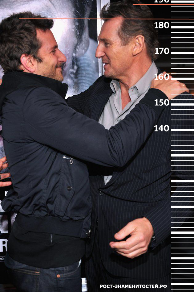 Рост Брэдли Купера составляет 183 сантиметра. Во всех трех фото, сделанных в разное время, рост Лиама Нисона колеблется от 189 до 191 сантиметра (погрешность из-за обуви и осанки).