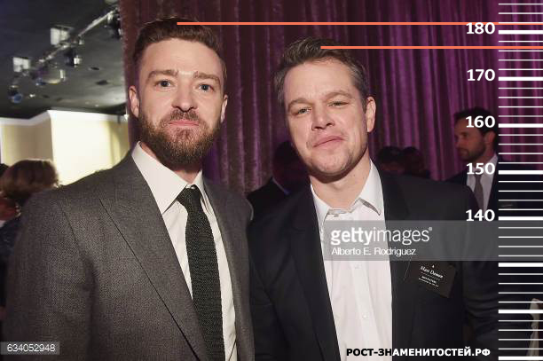 На следующем фото Мэтт Деймон стоит рядом с Джастином Тимберлейком, рост которого равен максимум 182 сантиметра. И тут снова актеру не хватает буквально сантиметра до заявленных параметров.