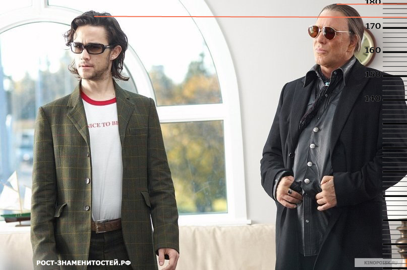 Рост Джозефа Гордон-Левитта составляет 174 сантиметра. Здесь Микки Рурк выше него на 5-6 сантиметров.