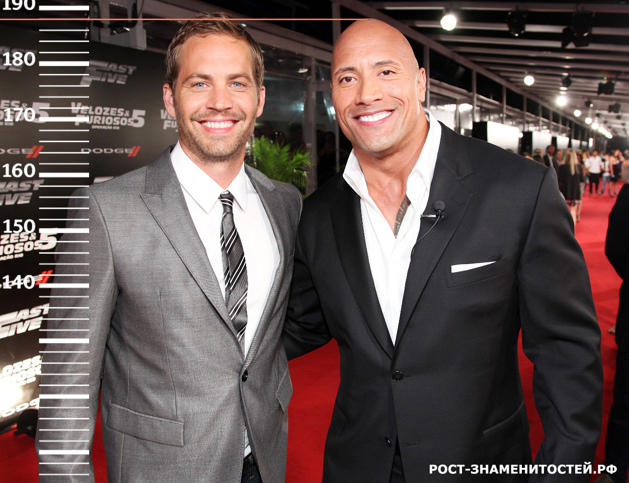 Рост Дуэйна Джонсона равен 188 сантиметров. На фото между актерами нет разницы в росте, что также подтверждает слова Пола Уокера.