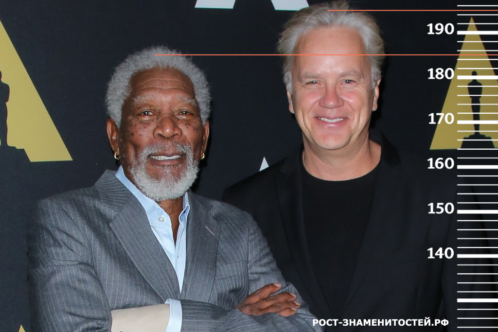 Рост Моргана Фримена составляет 185 сантиметров. Здесь между ним и Тимом Роббинсом разница ровно 10 сантиметров.