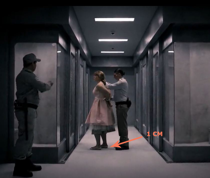 И напоследок рассмотрим кадры из сериала «Черное зеркало», где актриса стоит на фоне ростомера. На первом кадре видно, что Брайс Даллас Ховард в обуви с очень тонкой подошвой, примерно 1 сантиметр. Последующие два кадра показывают нам, что ее рост на отмекте 67,7 дюймов, что в переводе на сантиметры будет 172. Вычтем из этого значения толщину обуви и получим снова 171.