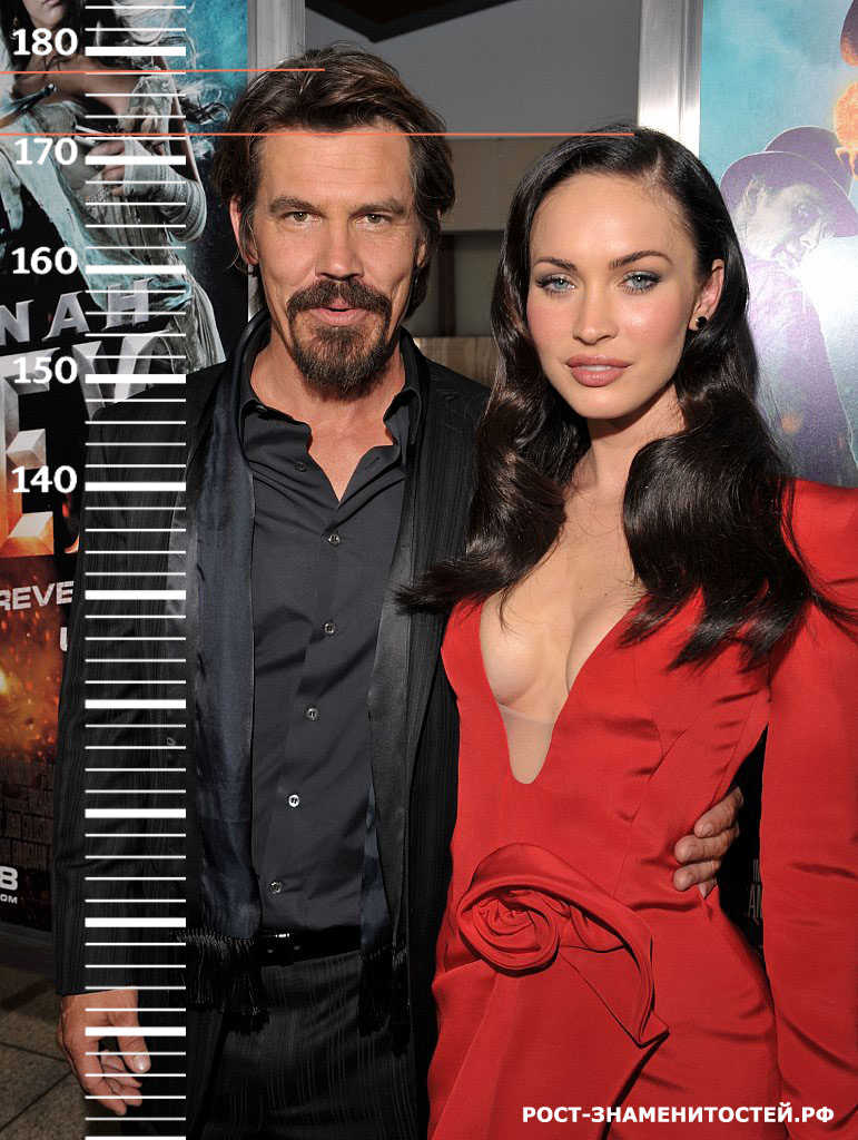 Рост Джоша Бролина составляет 176 сантиметров (178 на фото из-за обуви). Как видим, разница между ними достигает всего 6 сантиметров. Прибавим к этому значению высоту 11-12-ти сантиметрового каблука актрисы и получим реальную разницу в 17-18 сантиметров. Следовательно здесь рост Меган Фокс снова не поднимется выше отметки 161.
