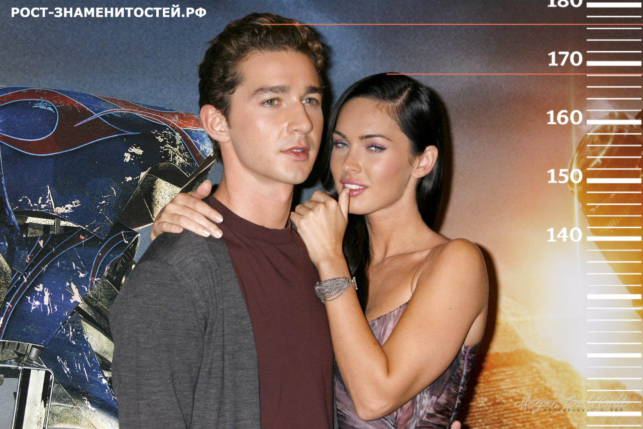 Рассмотрим следующие несколько фото, где сравним рост Меган Фокс с ростом Шайа Лабаф (174 см, на фото 176 из-за обуви). В обоих случаях с учетом высоты каблука актрисы, ее рост не превысит отметки 160 сантиметров.