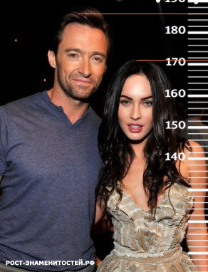 Микки Рурк имеет настоящий рост примерно 180 сантиметров (182 на фото из-за обуви). Здесь Меган Фокс на каблуках 10-11 сантиметров, и ее рост без обуви остановится на отметке 159-160 сантиметров (возможно погрешность из-за осанки).